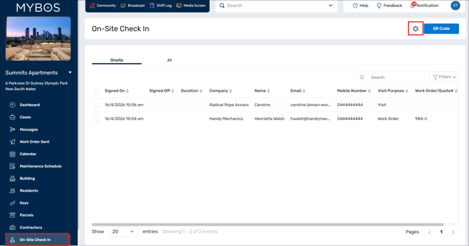 - In the Building Portal, go to On-Site Check In
