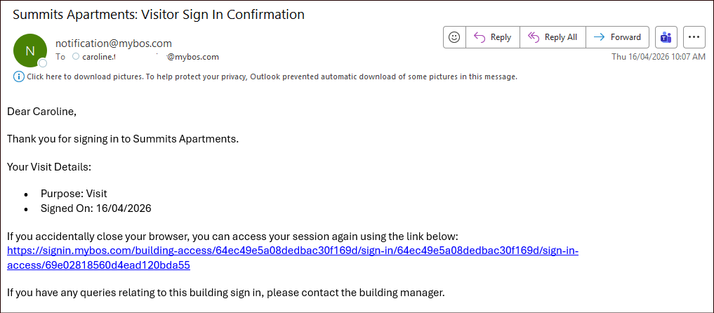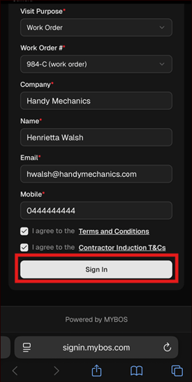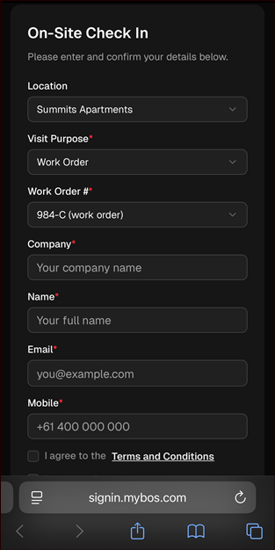 Note: Users will automatically be logged out after 24 hours, or Building Managers can manually sign out Visitors/Contractors via the BM Portal